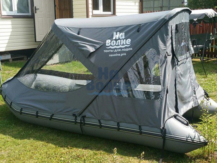 Ходовой тент позволяющий открывать любую сторону лодки: нос, корму или борта/ При этом остальные части тента остаются на каркасе для защиты от ветра или солнца.